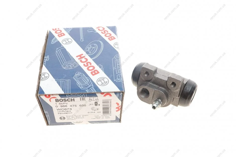 Циліндр гальмівний (задній) Renault Clio I 90-98/Peugeot 306 93-01/Citroen Xsara 97-05 (R) (d=20.6mm) BOSCH 0 986 475 635 (95668070, 4402A1)
