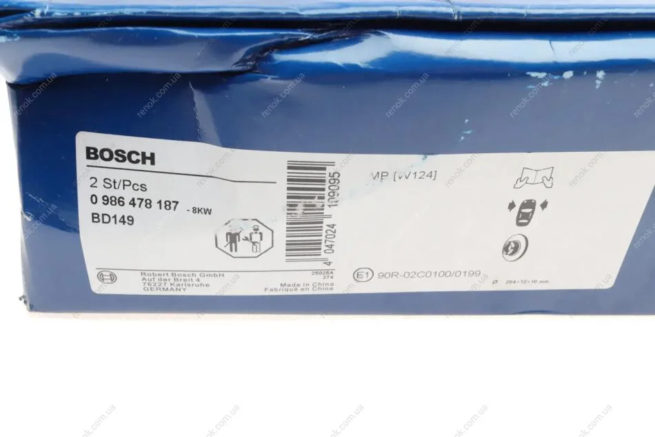 Диск гальмівний (передній) MB E-class (W124) -97 (284x12) BOSCH 0986478187 (1244211312, A1244211312)