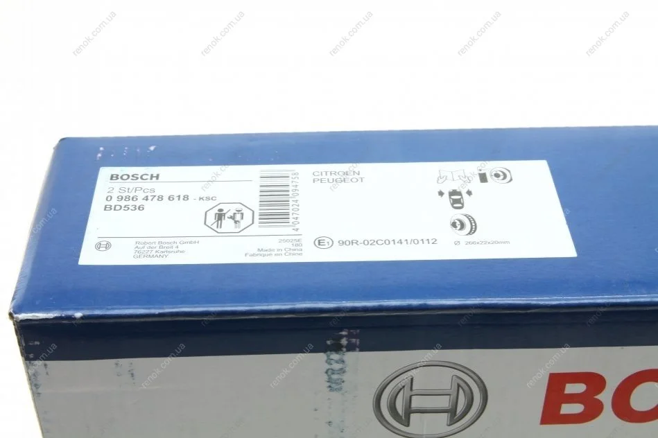 Диск гальмівний (передній) Citroen Berlingo/Peugeot Partner 01- (266x22) BOSCH 0986478618 (424883, 424983, 424916)