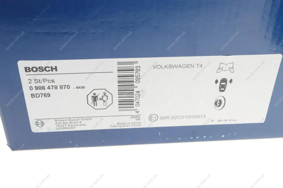 Диск гальмівний (передній) VW T4 90-03 (282x18) BOSCH 0986478870