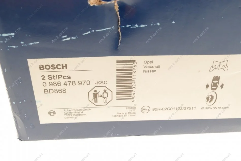 Диск гальмівний (задній) Renault Master/Opel Movano 98- (305x12) BOSCH 0986478970 (7700314107, 4320600QAA)
