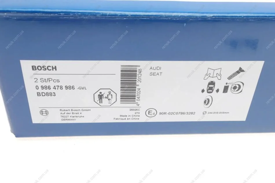 Диск гальмівний (задній) Audi 80/A4 93-12 (244.9x9.9) BOSCH 0986478986