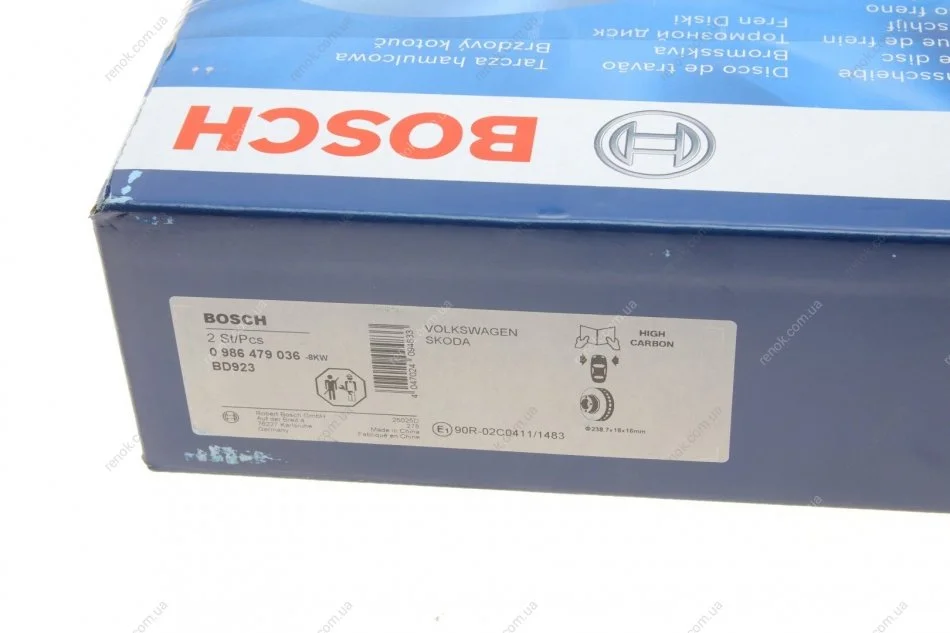 Диск гальмівний (передній) Skoda Octavia/Fabia/VW Polo 1.2-1.4 99- (238,7x18) BOSCH 0986479036