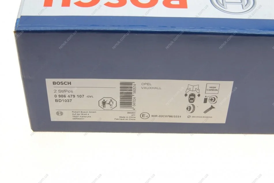 Диск гальмівний (передній) Opel Vectra C/Signum 02-09/Fiat Croma 05- (284.9x24.9) (з покр.) (вент.) BOSCH 0986479107 (569003)