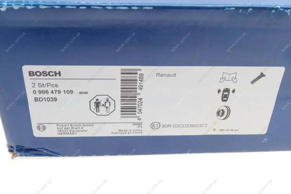Диск гальмівний (передній) Renault Espace 98-02 (305x28) BOSCH 0986479109 (7701206673)