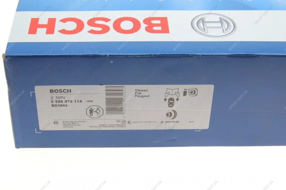 Диск гальмівний (передній) Citroen Jumpy/Peugeot Expert 1.6-2.0HDI 95- (285x28) BOSCH 0986479114 (4249H7, 4246P2, 4246P1)