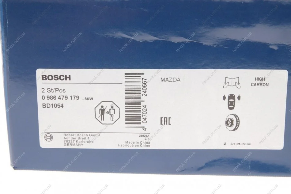 Диск гальмівний (передній) Mazda 3/5 03- (278x25) BOSCH 0 986 479 179