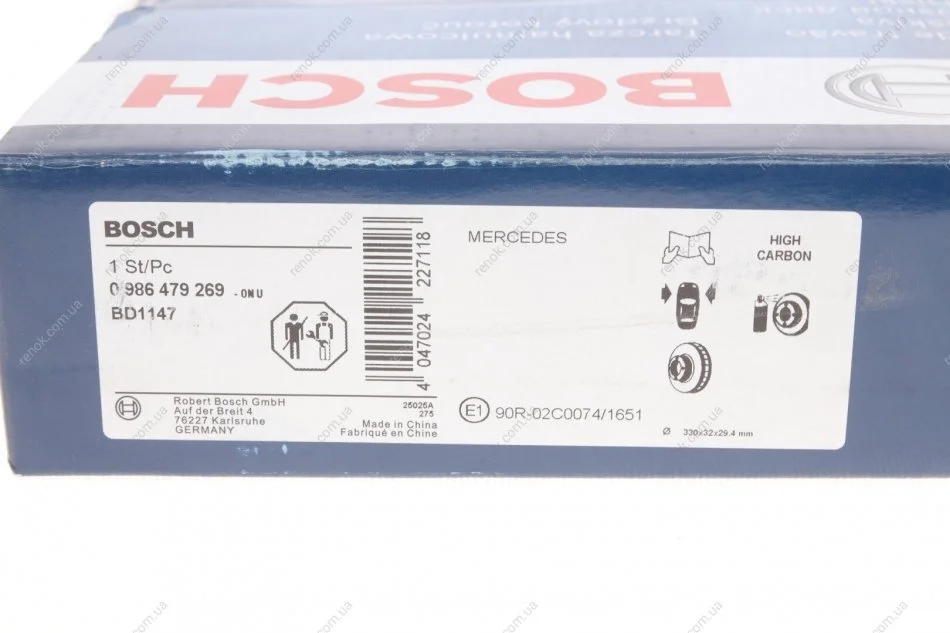 Диск гальмівний (передній) MB M-class (W164)/R-class (W251) 06-14 (330x32.2) (з покриттям)(вент.) BOSCH 0 986 479 269 (1644210412, 1644211312, A1644210412)
