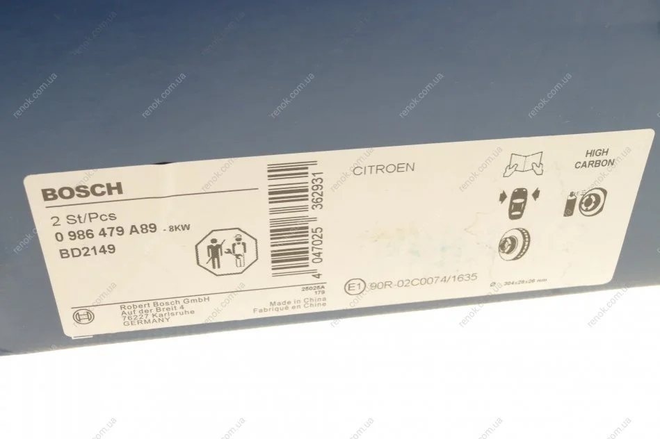 Диск гальмівний (передній) Citroen Picasso II/Peugeot 308/5008 13-/Opel Combo 18- (304x28) BOSCH 0 986 479 A89 (9686324780, 424993, 4249K1)