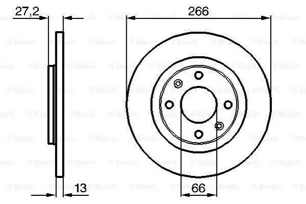 Диск гальмівний (передній) Citroen Berlingo/Peugeot Partner 96- (266x13) BOSCH 0 986 479 B51 (424982, 4246R4, 4246R2)