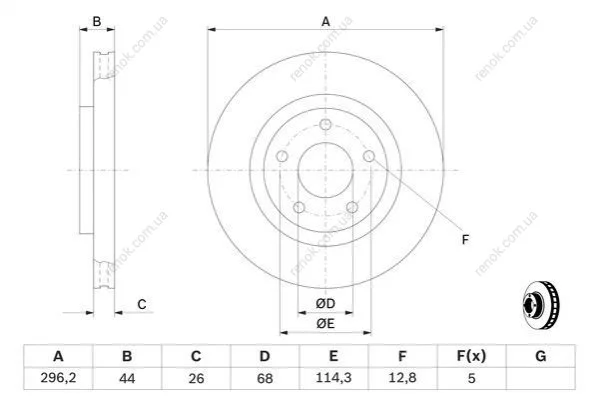 Диск гальмівний (передній) Nissan X-Trail 2.0/2.5dCi 07-/Juke 1.6 10- (296.2x26) з покриттям BOSCH 0 986 479 C04 (402061KC1A, 402061KC1B, 40206JD00A)
