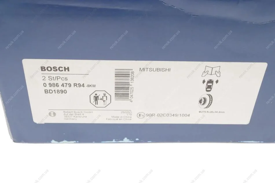 Диск гальмівний (передній) Mitsubishi Lancer 03-/Galant VI 96-04 (275.9x26) BOSCH 0986479R94