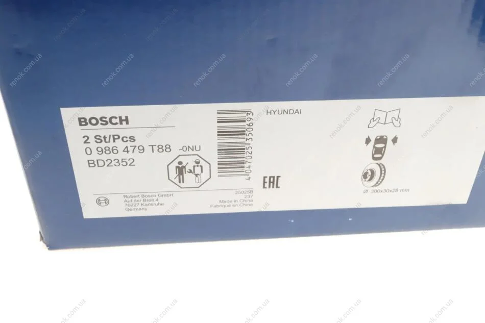 Диск гальмівної (передній) Hyundai H-1 2.5 CRDi 08- (300x30) BOSCH 0986479T88 (517124H500)