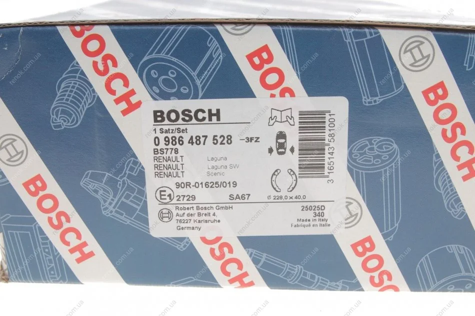Гальмівні колодки барабанні ROBERT BOSCH 0986487528 (7701205339, 7701204883)