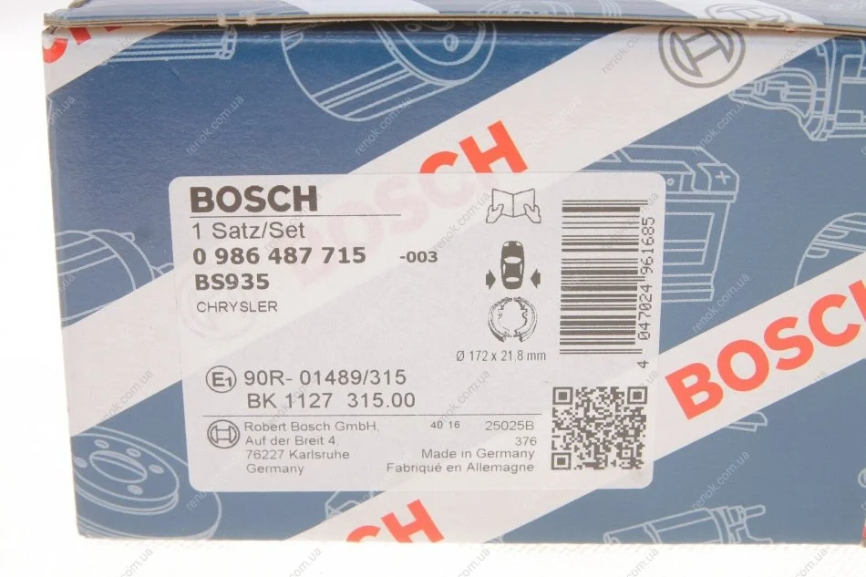 Гальмівні колодки барабанні ROBERT BOSCH 0986487715 (05073647AA, 05073647AB, 05066036AA)