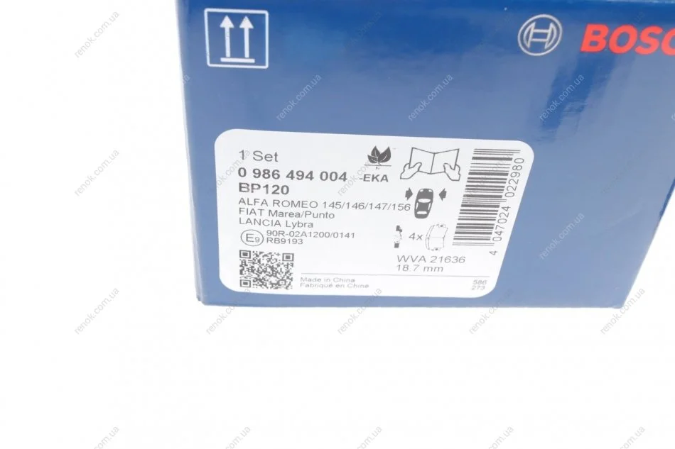 Колодки гальмівні (передні) Alfa Romeo 145/146/156/GT/GTV/Spider/Fiat Bravo 95-05 BOSCH 0986494004 (71713143, 71752995, 71753039)