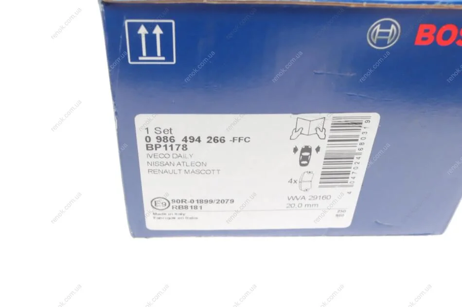 Колодки гальмівні (передні) Renault Master 04-10/Mascott/Iveco Daily 99-06 BOSCH 0986494266 (5001844748, 0034204620, 2995632)