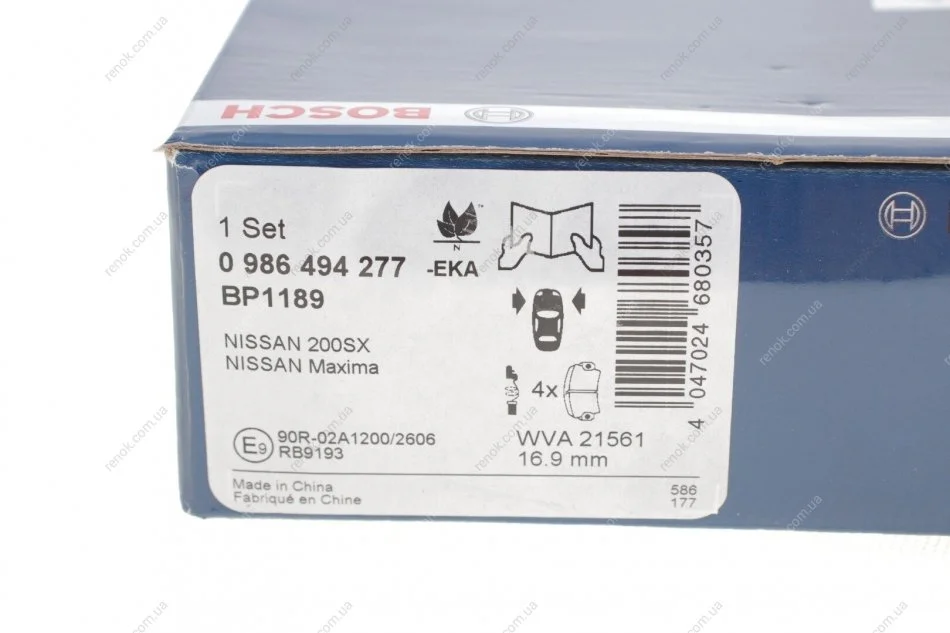 Комплект гальмівних колодок, дискове гальмо 0 986 494 277 BOSCH 0986494277 (4106073L91, 410609J425, D1060EM10A)