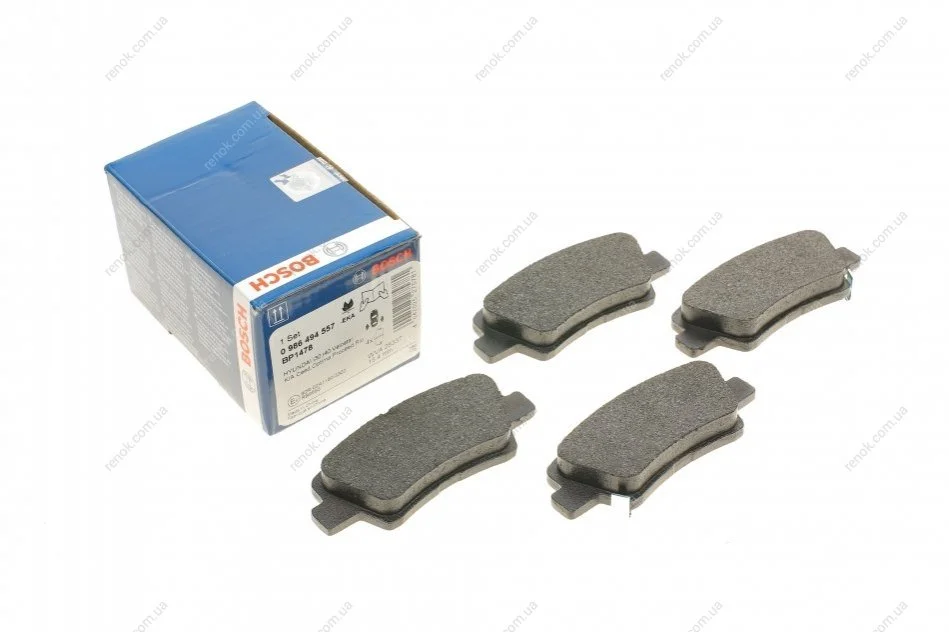 Комплект гальмівних колодок (дискових) (задніх) Kia Sportage/Ceed/Rio/Optima/Hyundai Accent/i10/i20/i30/i40/Elantra 10- BOSCH 0986494557 (58101B9A30, 583223FA01, 583023ZA70)