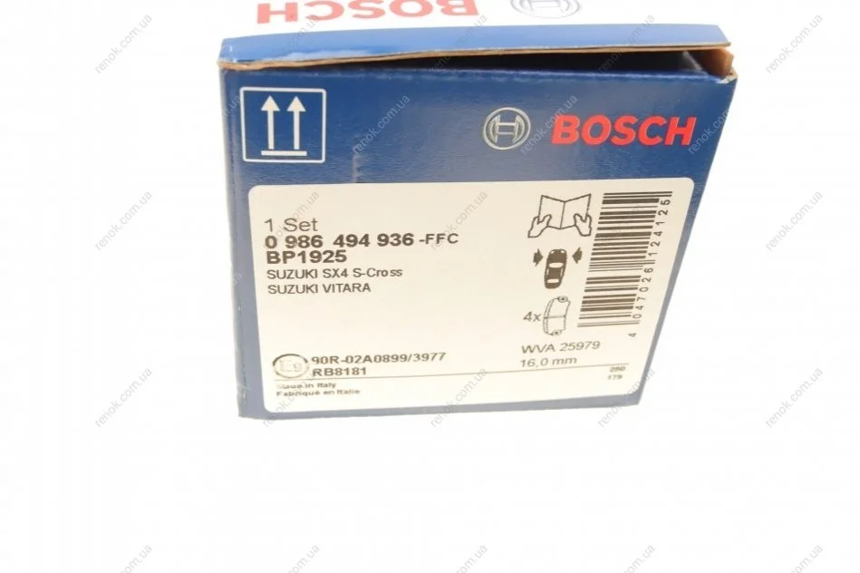 Колодки гальмівні (передні) Suzuki SX4/ Vitara 1.4 T/1.6 14- BOSCH 0986494936 (5581061M01, 5581061M50000, 5581061M01000)