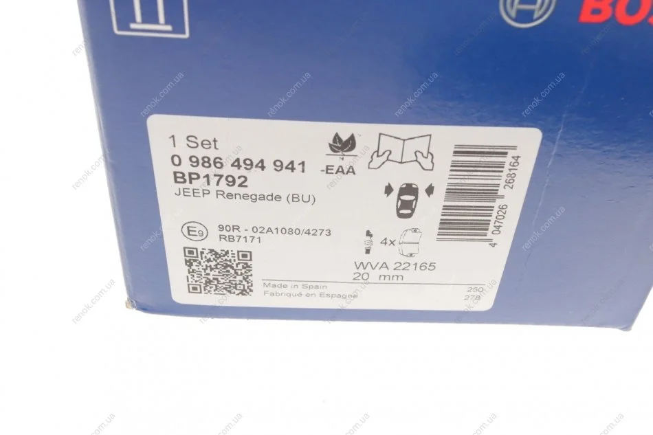Колодки гальмівні (передні) Fiat 500X 1.4-1.6/1.6-2.0D 14-/ Jeep Renegade1.4-1.6/2.0CRD 14- BOSCH 0986494941 (52094174, 77367282, 77368577)