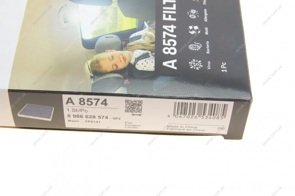 Фільтр салону Mitsubishi Outlander/Lancer/L200 06-/Citroem C4 12- (вугільний/антиалергенний/антибактеріальний) BOSCH 0 986 628 574