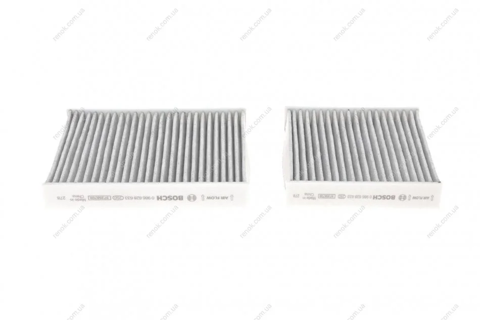 Фільтр салону Citroen C3/C4/Peugeot 207/208 09- (К-кт 2 шт.) (вугільний/антиалергенний/антибактеріальний) BOSCH 0 986 628 633 (647990)