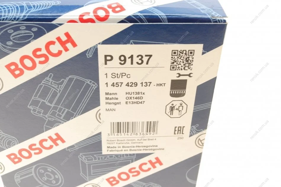 Фільтр масляний MAN E2000 12.0/12.8 00-/F2000 10.0/12.0 94- BOSCH 1457429137 (5021107403)