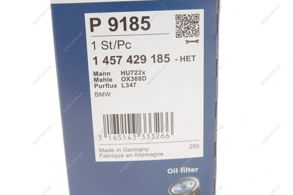 Фільтр масляний BMW 3 (E46)/ 5 (E60/E61) 2.0 D 03-- BOSCH 1457429185 (06E115466, 06E115562A, 06E115562)