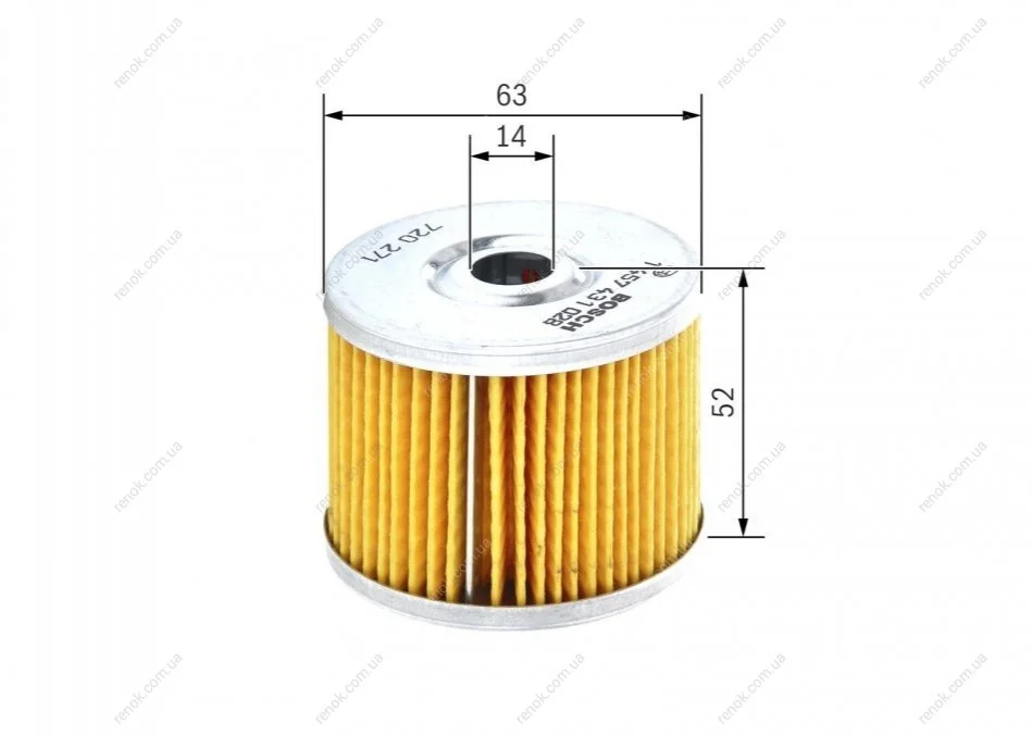 N1028 H=53mm Фильтр топливный диз. вкладыш CITROEN 1,8-2,5D RENAULT 1,6-2,4D: Rapid, Master PEUGEOT FIAT BOSCH 1457431028 (0008549757, 8549757000, 7701033176)