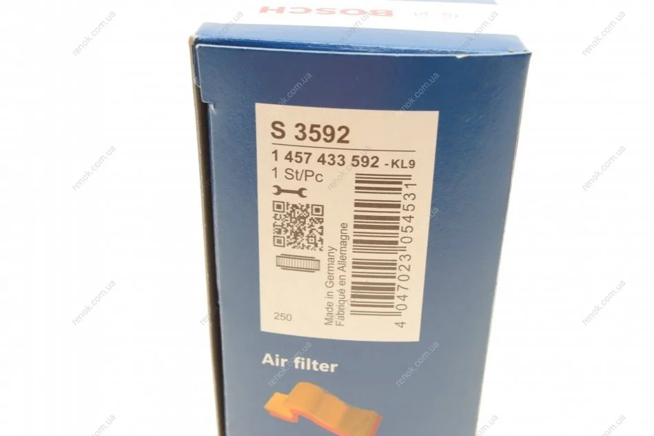 Фільтр повітряний Peugeot 206/307 1.4i 03- BOSCH 1457433592 (1444CQ, 1444TL, 1444FC)