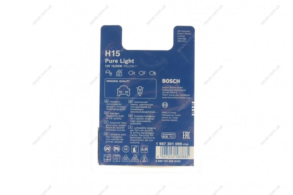 АВТОМОБІЛЬНА ЛАМПА РОЗЖАРЮВАННЯ BOSCH 1 987 301 099