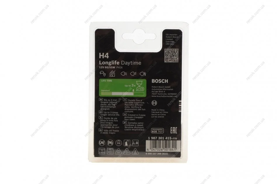 ЛАМПА 12V LONG LIFE DAYTIME (SB) 1 987 301 415 BOSCH 1987301415 (5802610, 7703097171)