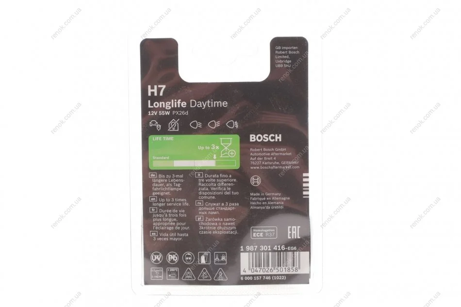 ЛАМПА 12V LONG LIFE DAYTIME (SB) 1 987 301 416 BOSCH 1987301416 (0025440094, 1607699080, 1608753380)