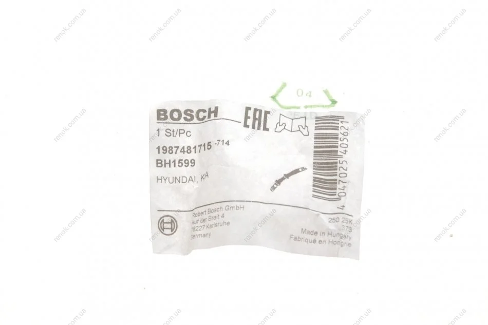 Шланг гальмівний (передній) Kia Sportage 10- (L) (L=471mm) BOSCH 1 987 481 715 (587312S100)