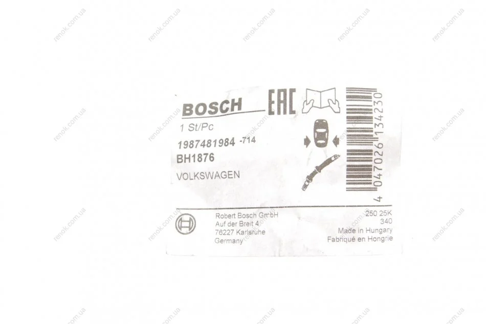 ШЛАНГ ГАЛЬМ. ЗАДНІЙ BOSCH 1 987 481 984