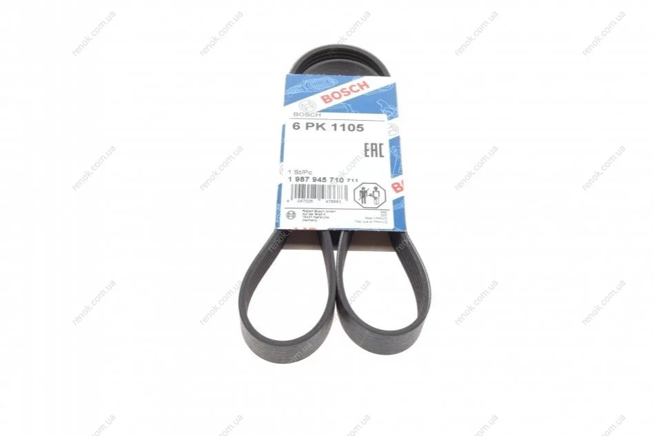 Ремінь генератора Nissan Tiida 1.8 07-12/Fiat Ducato 2.0 94-02 /Renault Espace 3.5 V6 02- (6PK1105) BOSCH 1987945710 (96235499, 1192031UXB, 11720JD20A)
