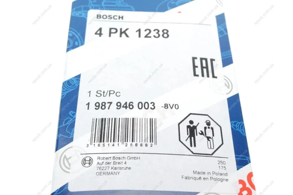 Ремінь генератора Renault Clio/Kangoo 1.4i/1.6 98-03 (4PK1238) BOSCH 1987946003 (7700869686, 96030324, 91536229)