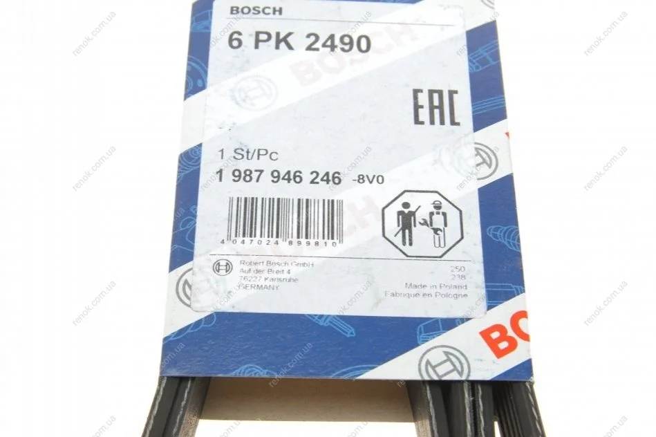 Ремінь генератора Audi A4/A6/A8/Q7 2.7/3.0TDI 04- (6PK2490) BOSCH 1987946246 (059903137T, 06E903137R)