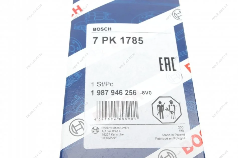 Ремінь генератора Renault Megane/Scenic 1.4 09-/Honda Accord/CR-V 2.2 i-CTDi 04- (7PK1785) BOSCH 1 987 946 256 (8200833554, 8200127693, 38920RBDE03)