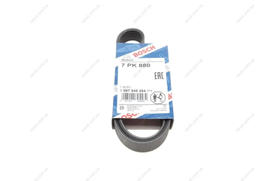 Ремінь генератора Renault Clio 1.2 16V 05-14 (7PK880) BOSCH 1987946264 (8200322234, 8200830184)