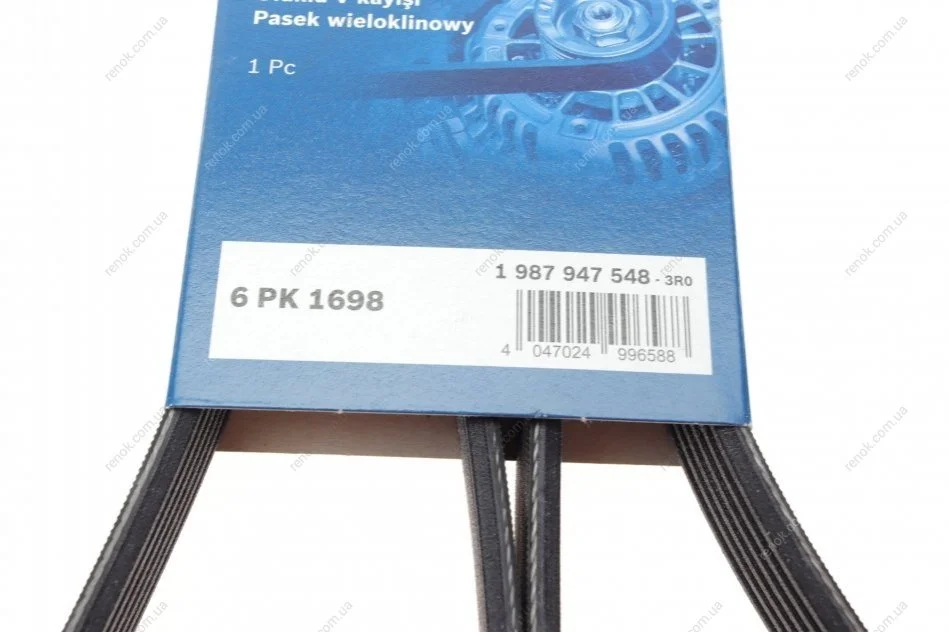 Ремінь генератора Skoda Fabia/VW Passat B6/B7 09-14/Citroen Berlingo/Peugeot 98- (6PK1698) BOSCH 1987947548 (9654673180, 96211951, 5750ZH)