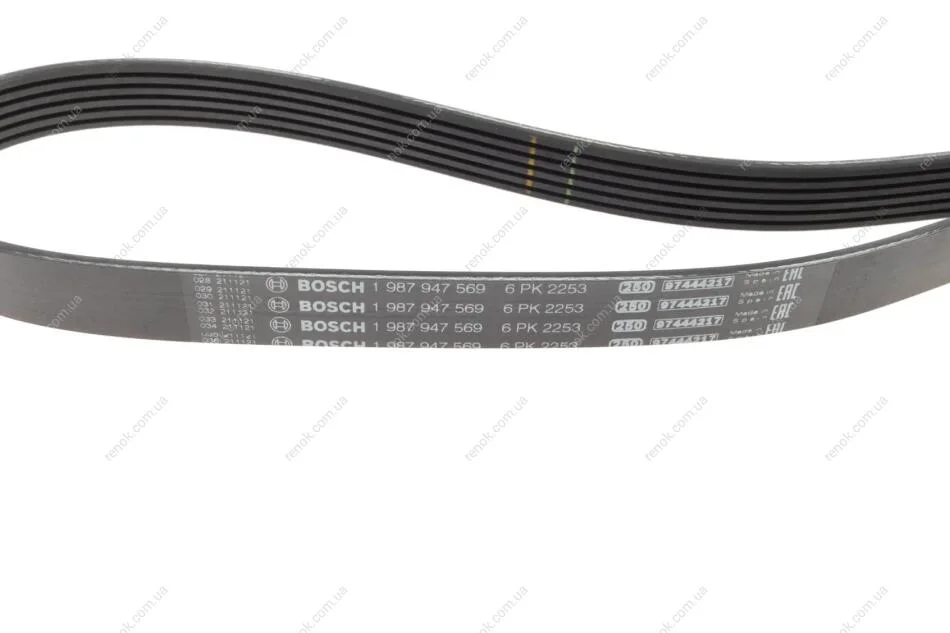 Ремінь генератора MB C-class (W202)/E-class (W211) 2.2CDI/2.7CDI 98-09 (OM612)(6PK2253) BOSCH 1987947569 (53012009, 53013298AA, 6129970092)