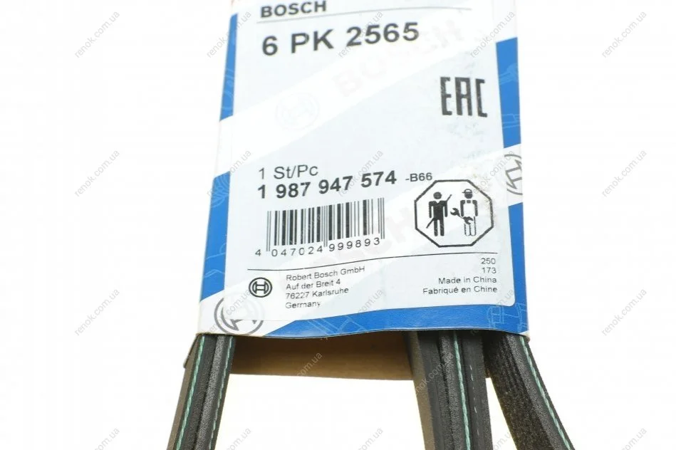 Ремінь генератора Mitsubishi Lancer 1.8 08-/Outlander 2.0-2.4 06- (6PK2565) BOSCH 1987947574 (5750YT, 1607017180, 16070171)