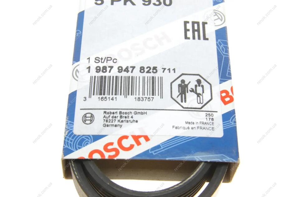 Ремінь генератора Honda Accord 2.0 EX-97 (5PK930) BOSCH 1987947825 (31110PH2004, 31110PH20040, 31110PH2J02)