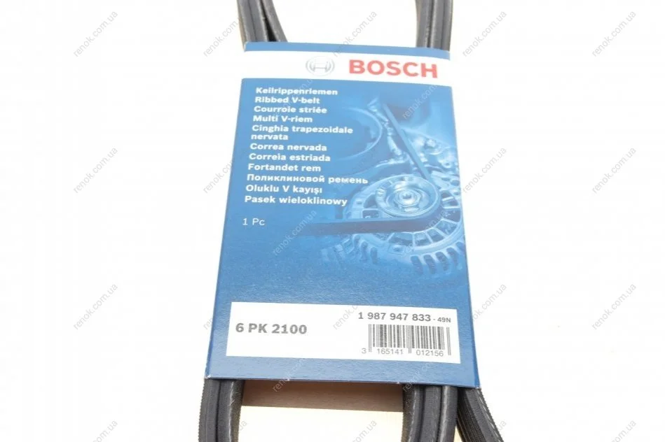 Ремінь генератора Ford Transit 1.8 16V 02-13/MB Sprinter/Vito (W638) 95-03 (6PK2100) BOSCH 1987947833 (0089970992, 0089972692, 0089973692)