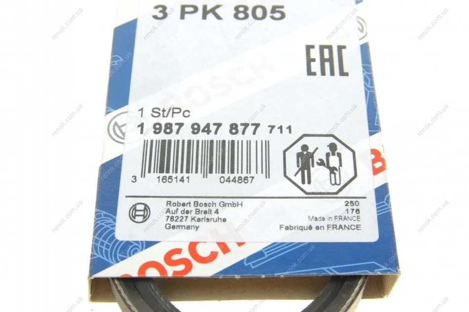 Ремінь генератора Mazda CX 5 (3PK800) BOSCH 1987947877 (1172001B03, 31110PH3003, 31110PH3004)