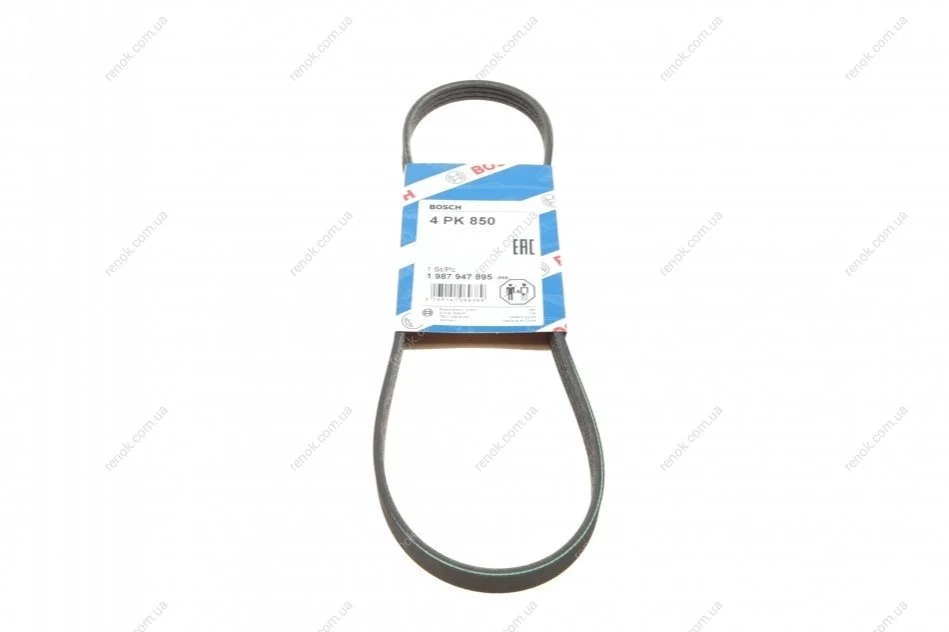 Ремінь генератора поліклиновий Hyundai Accent 1.3-1.6 94-11/ Toyota Carina/ Corolla 1.6-2.0 93-01 (4PK850) BOSCH 1987947895 (5750Q9, 04668241AE, 9971329500)
