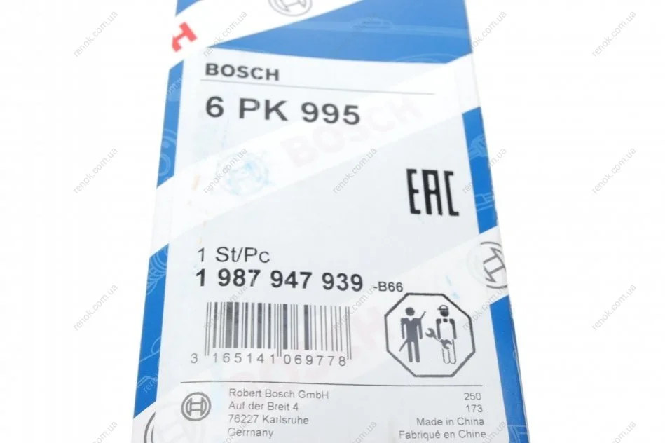 Ремінь генератора Citroen Jumper/Fiat Ducato 2.8HDi/JTD 00- (ALT,WP) (6PK995) BOSCH 1 987 947 939 (128046, 6453FK, 128051)