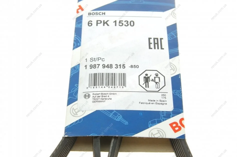 Ремінь генератора Fiat Doblo1.3-1.6 D 10-/Opel Astra F/Corsa B/Vectra B 1.4-1.8/ 94-03 (6PK1530) BOSCH 1 987 948 315 (09129464, 252122B010, 90351803)